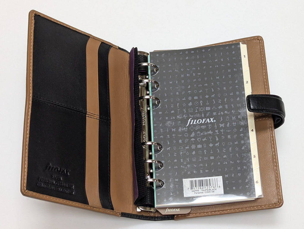 Filofax Taupe/Black Leather Personal Nappa Agenda/Planner #25136