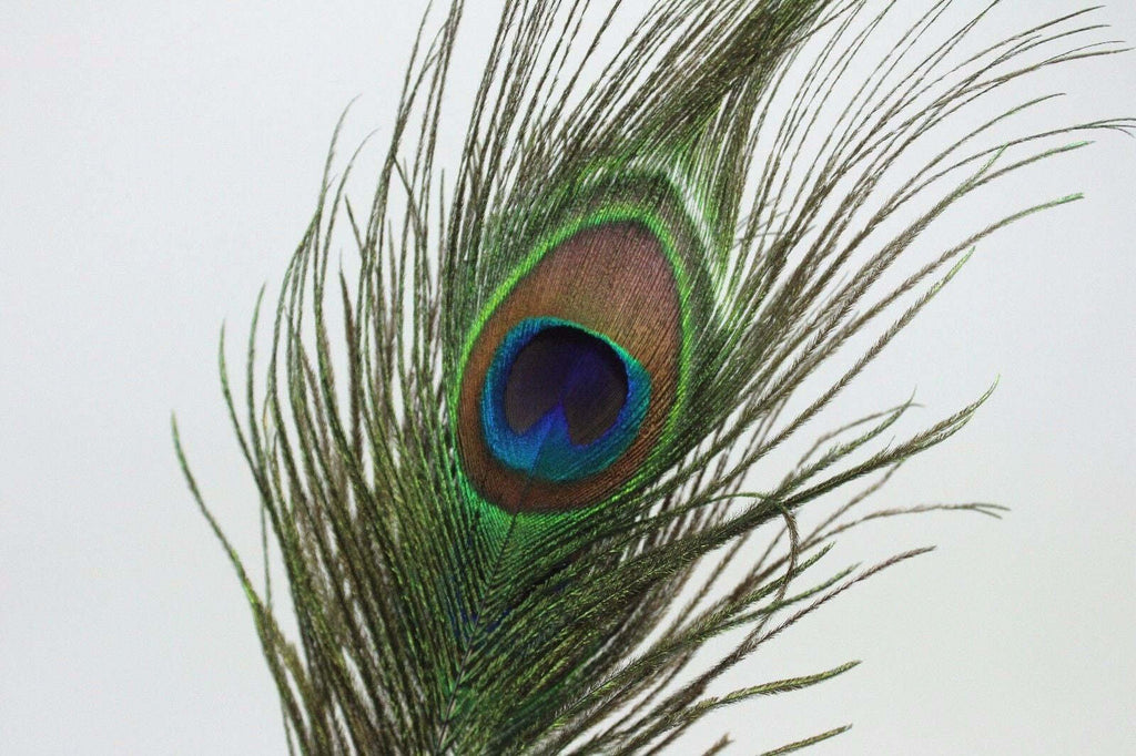 Peacock Quill Feather Ballpoint Pen Set With Ceramic Pen Stand