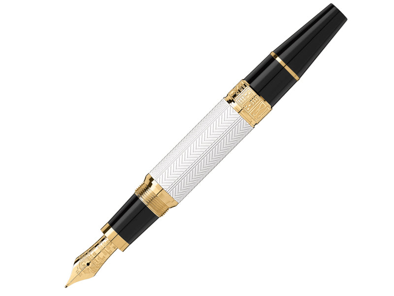With the Writers Edition, issued every year since 1992 in a strictly limited edition worldwide, Montblanc pays tribute to the greatest icons of literary history. The Writers Edition William Shakespeare is only available in a strictly limited edition worldwide – this is guaranteed by Montblanc, as it is for all of its Limited Editions. The issue number engraved on the cap is proof of the uniqueness of every piece. The fountain pen version of this edition will be limited to 8,700 pieces. The black and white colors are inspired by the different flags of the theater on the occasions of different genres (white – comedy, black – tragedy).