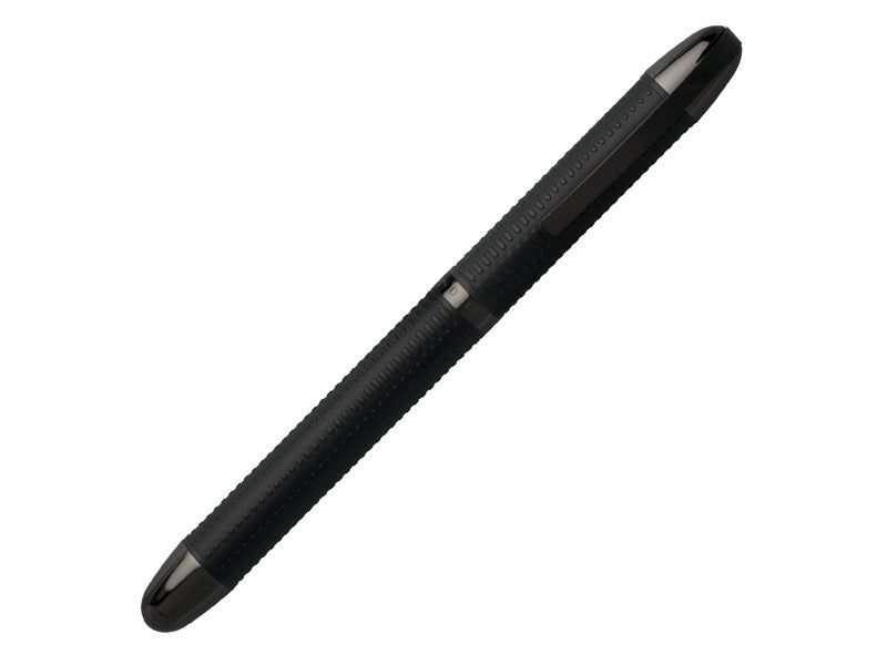 The Echo roller ball pen features a linear dash line pattern that provides texture and a pleasing tactile experience for the user. The matte black body is paired with a shiny gunmetal trim making for a sleek and modern design.